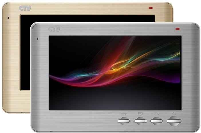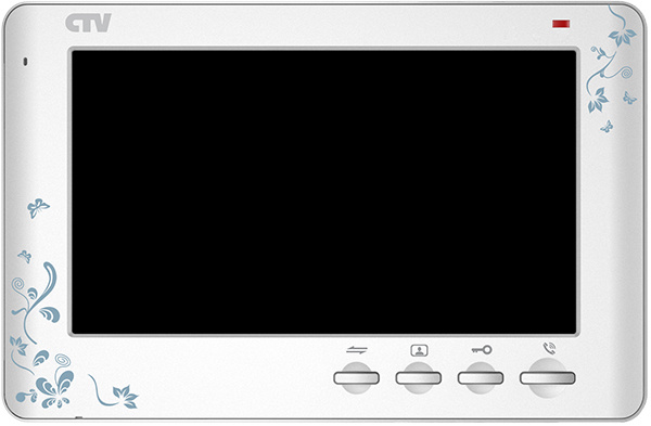 Монитор видеодомофона со сменными передними панелями (серебристый металлик, "шампань", "белый декор"), с кнопочным управлением, встроенный автоответчик, , встроенный источник питания.